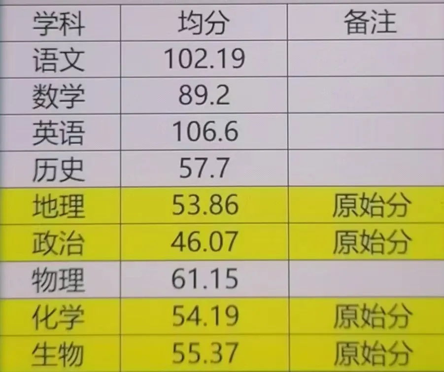 下面是无锡各科均分: