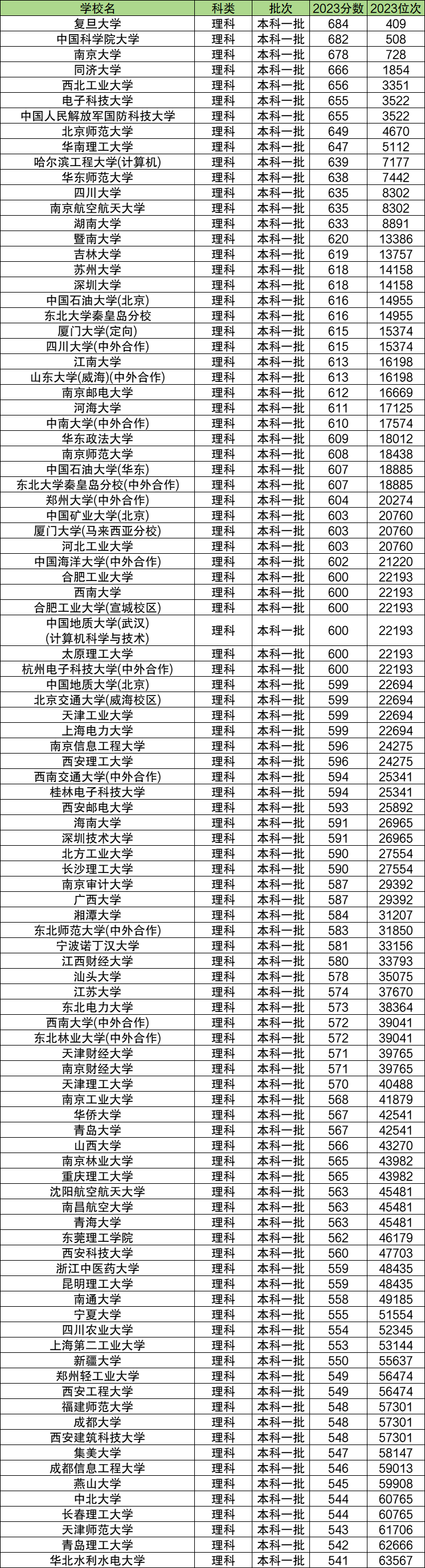 南京大学,2023年四川省理科最低678分,共招生66人,招生专业有电子信息类、环境科学与工程类、建筑类、理科试验班类、金融工程等。