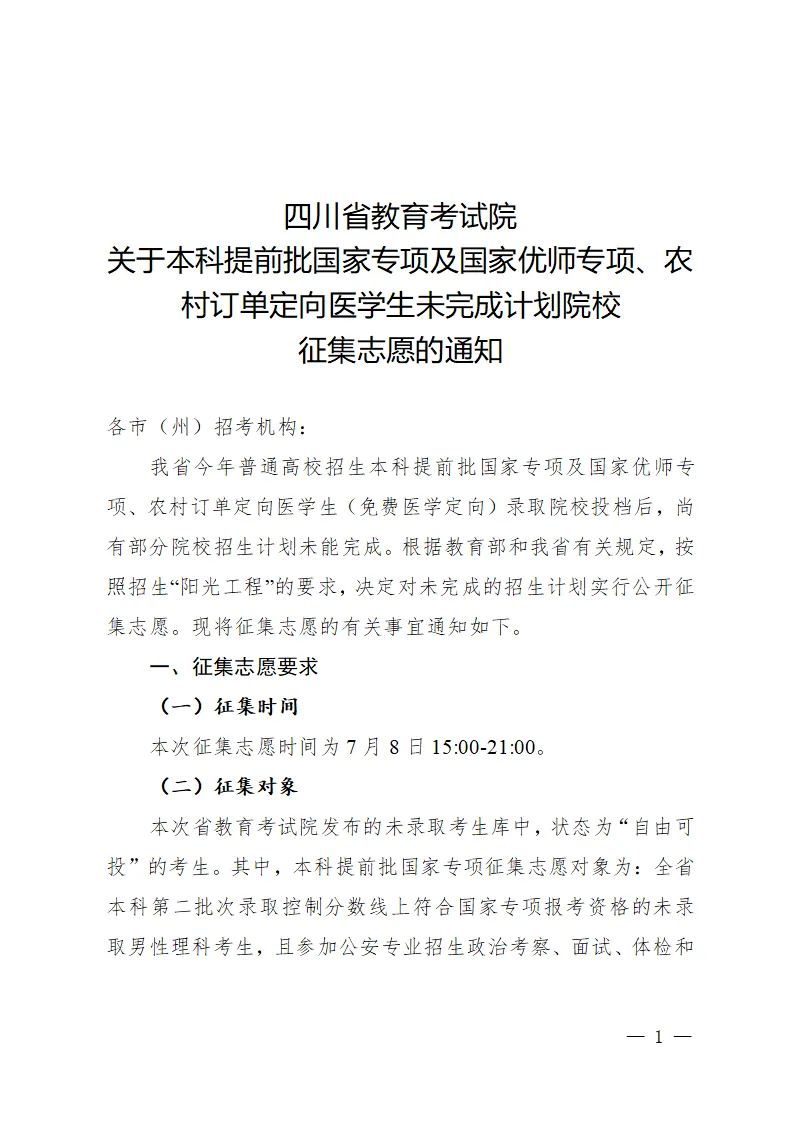 2025国家专项计划第2次、地方专项计划第1次征集志愿(填报时间:7月22日22:00-23日12:00)