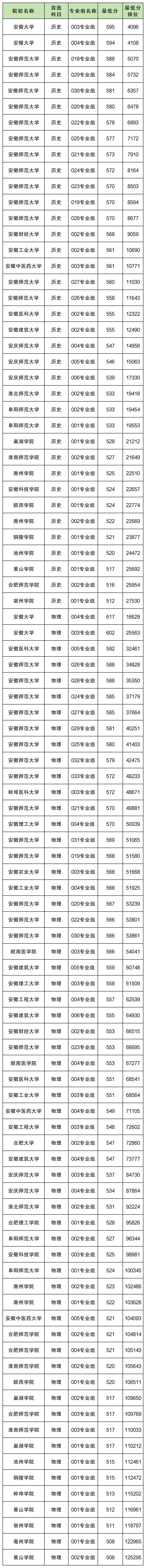 以下是安徽地方专项计划大学2025年最低录取分数线。