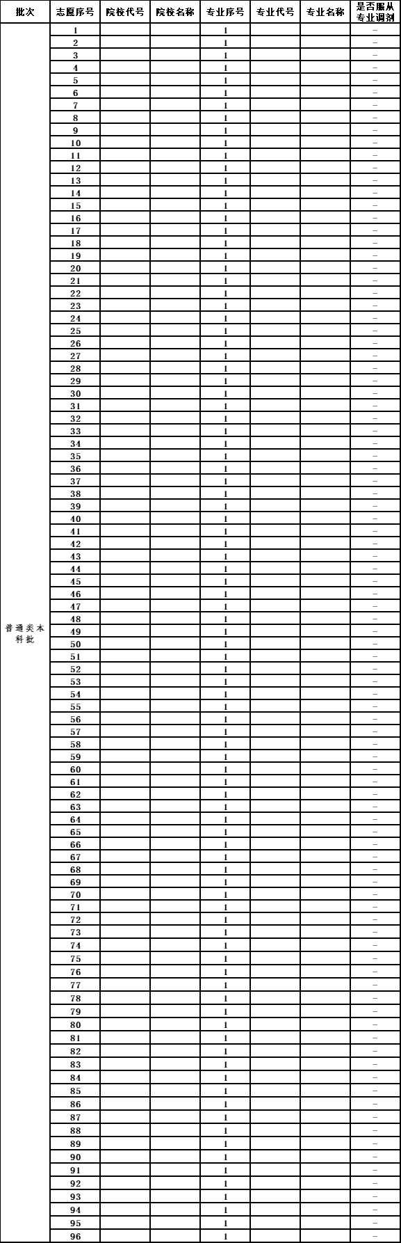 普通类:设置96个平行志愿,每个志愿为1所院校+1个专业组(含6个专业及是否服从调剂)。