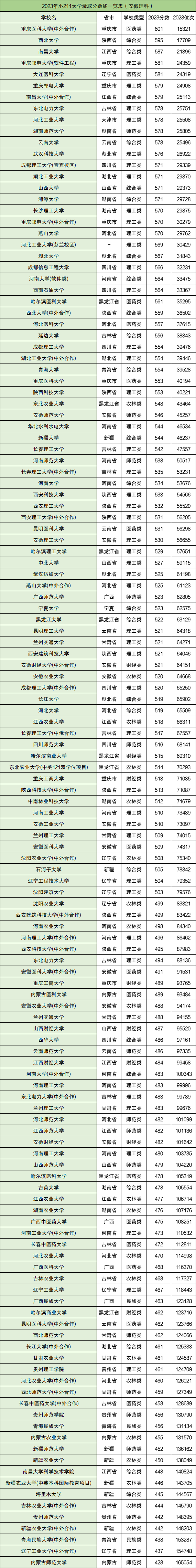小编在此以安徽省为例,整理了小211高校2023年在安徽的录取分数线,如下: