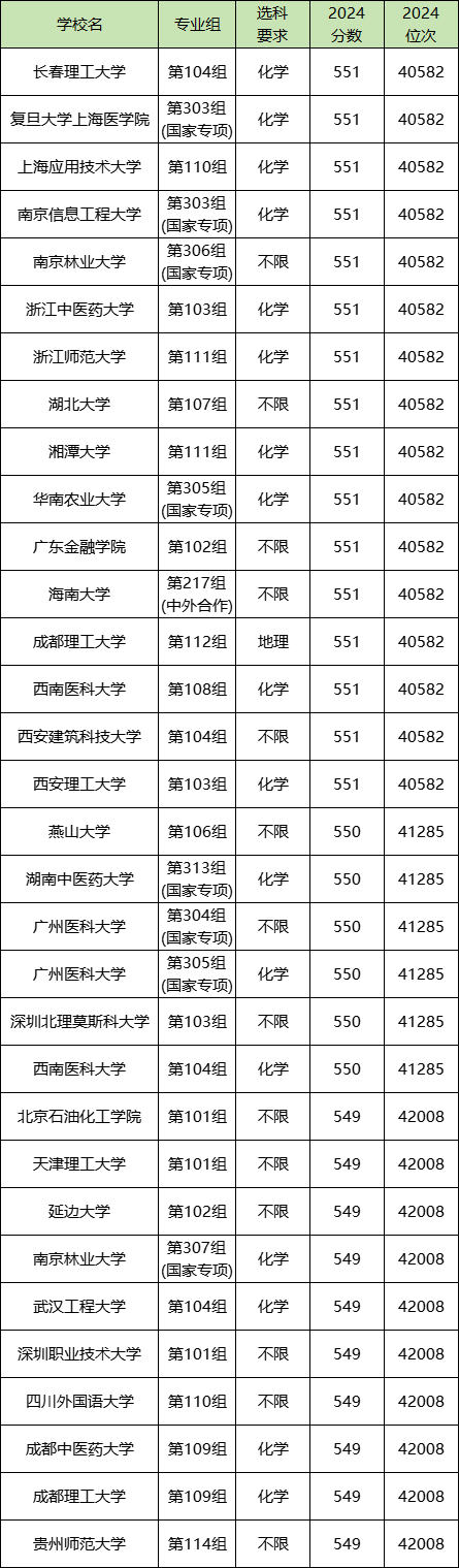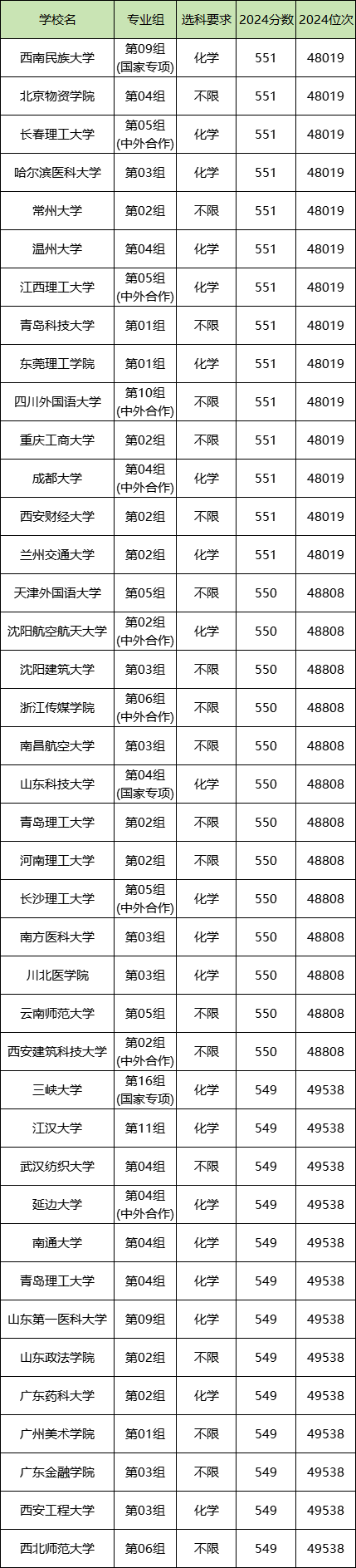 另外省外比较好的还有复旦大学上海医学院(303组国家专项)551分、海南大学(217组中外合作)551分、延边大学(102组)549分。