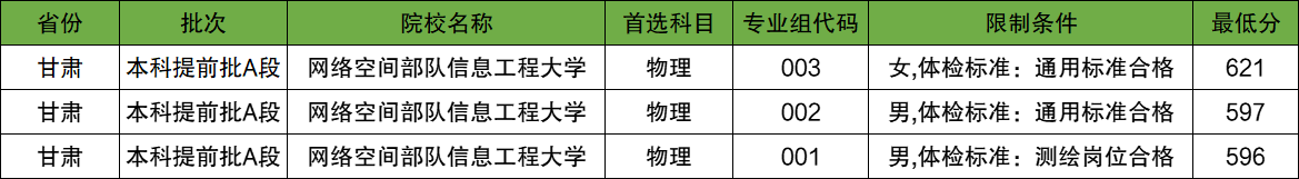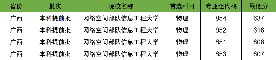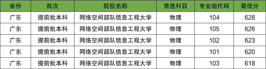 2025年网络空间部队信息工程大学生长军官本科学员在广东的录取分数线整理如下,供大家参考。