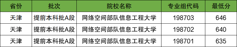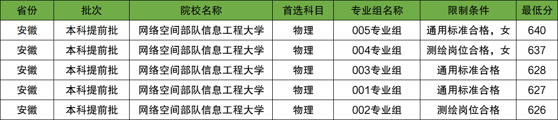 网络空间部队信息工程大学2025年录取分数线已为大家整理如下,包含网络空间部队信息工程大学在全国29个省市的生长军官本科学员高考生录取分数线,包含2025年学校的招生简章、招生计划等,供2026届考生及家长参考。