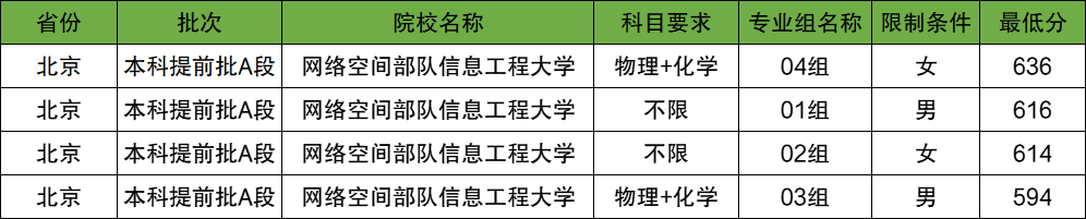 2025年网络空间部队信息工程大学生长军官本科学员在北京的录取分数线整理如下,供大家参考。