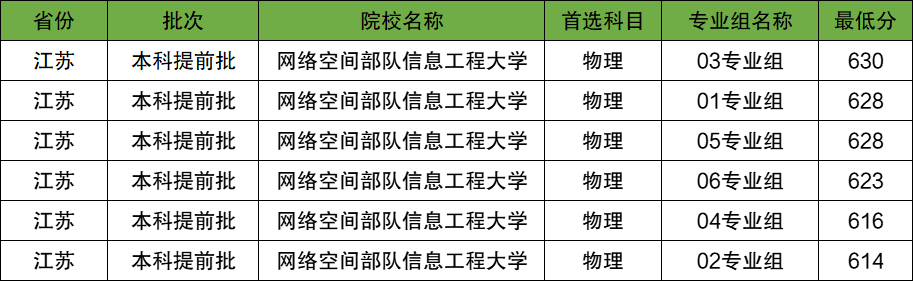 2025年网络空间部队信息工程大学生长军官本科学员在江苏的录取分数线整理如下,供大家参考。