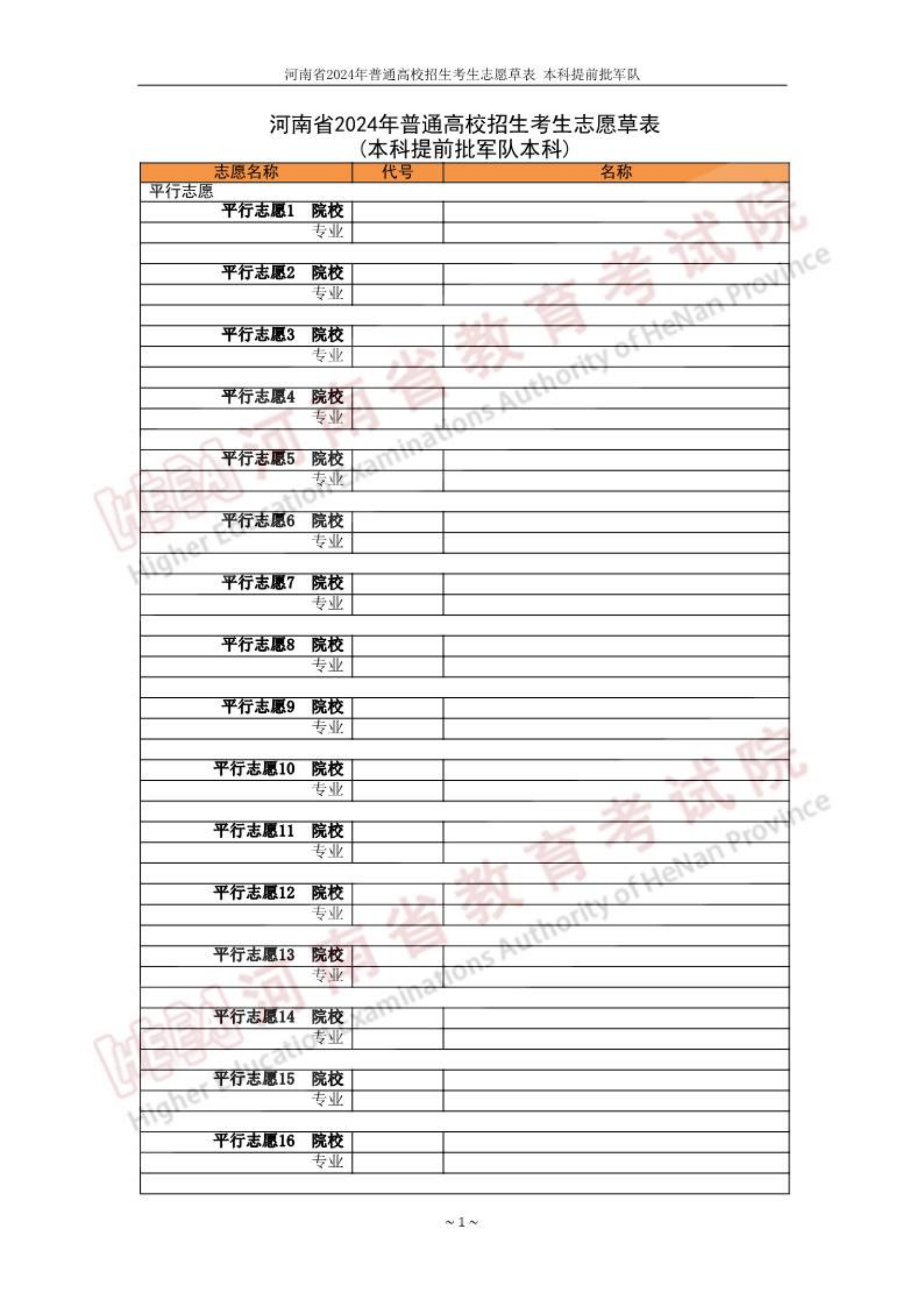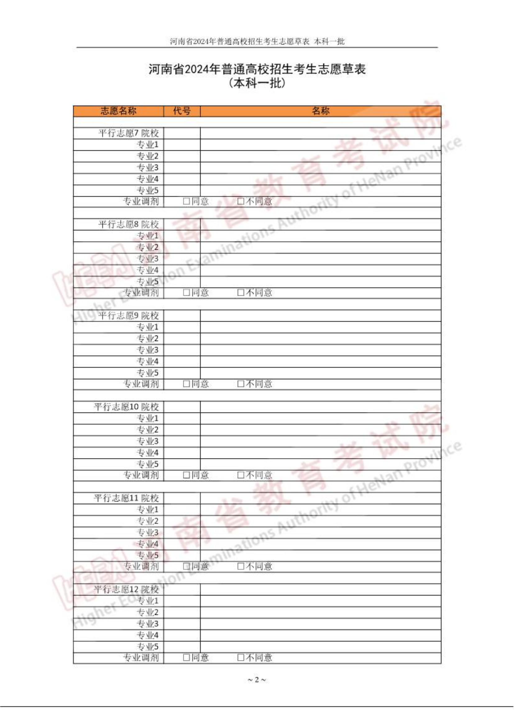 2024年河南省高考本科一批、本科二批、高职高专批的志愿填报时间均为6月30日8:00—7月2日18:00。本期将介绍2024年河南省高考各批次志愿填报时间及填报数量,还包括河南高考各批次志愿表。