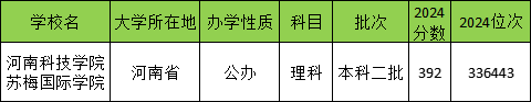 可以看到,2024年河南省高考390分左右的理科考生可以报考河南科技学院苏梅国际学院932分。