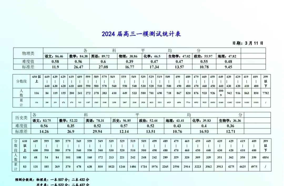 为帮助大家能更直观地看到新高考划线的差异,小编收集了2024年南昌二模、南昌一模、南昌零模的官方预测分数线以及成绩排名统计表,以供参考。
