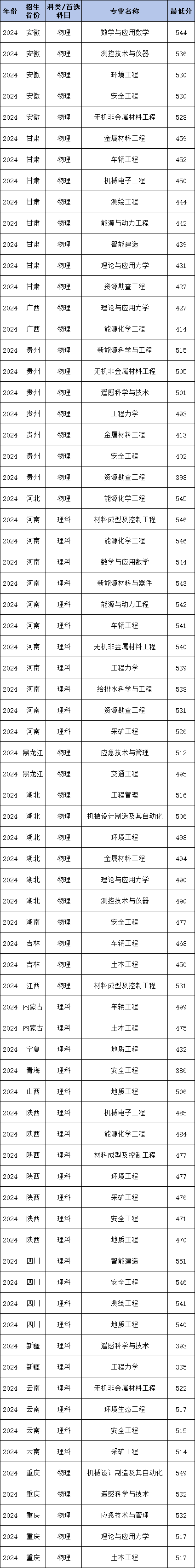 2024年辽宁工程技术大学国家专项计划在贵州录取最低分物理类为398分,物理组收分最低的专业为资源勘查工程。