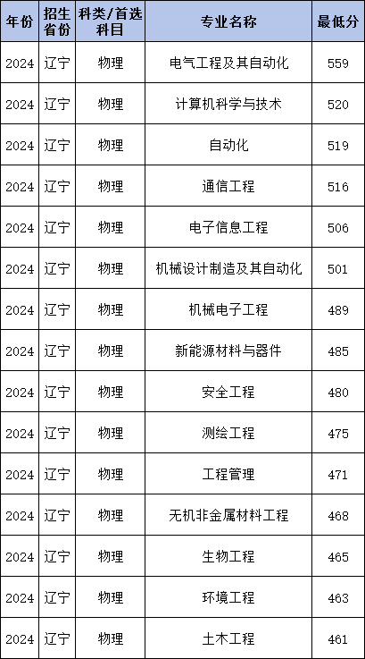 2024年辽宁工程技术大学地方专项计划在辽宁录取最低分物理类为461分,物理组收分最低的专业为土木工程。