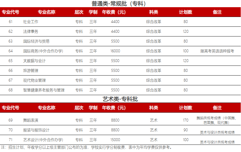 招生专业有大数据与会计、智慧健康养老服务与管理、大数据与会计、现代物业管理、国际经济与贸易等8个专业: