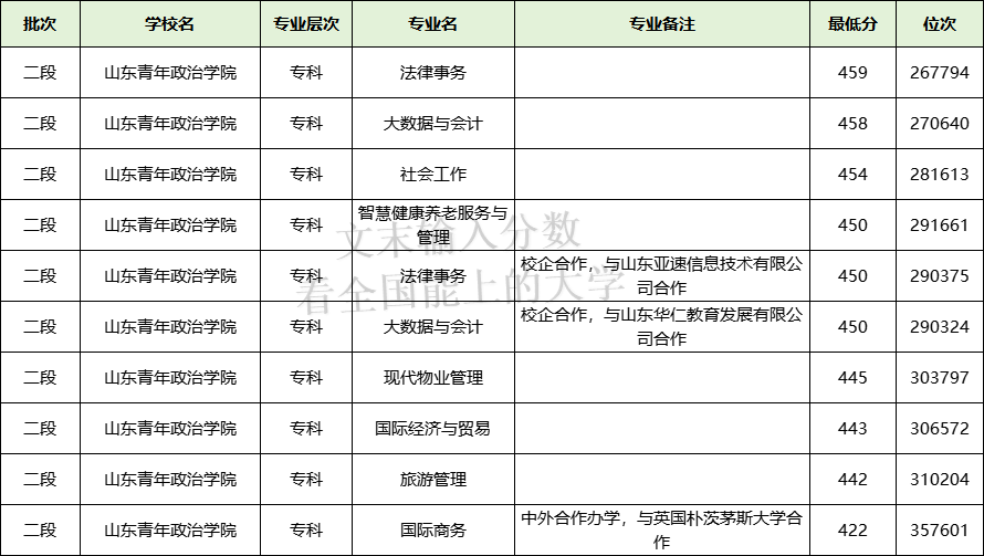 一、山东青年政治学院专科录取线