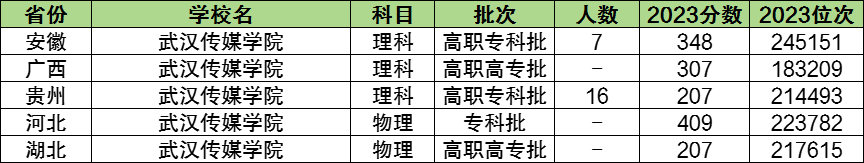 2023年武汉传媒学院在河北、安徽、江西、广东、广西等8个地区招收专科考生。