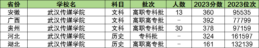 2023年武汉传媒学院专科的文科招生,在湖北省最低,需要161分以上,最低分位次132139名。