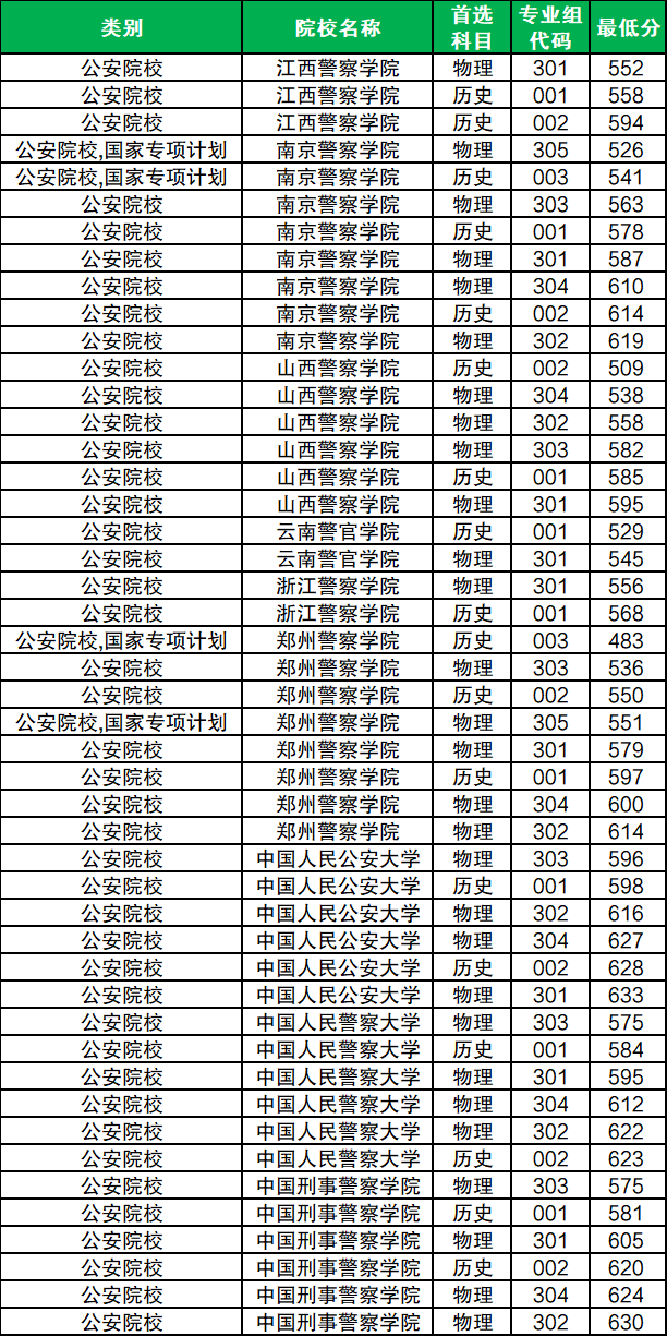 历史类考生上警校比物理类考生更为容易,而该类型院校中,中国人民公安大学、中国人民警察大学、中国刑事警察学院的部分专业组收分门槛较其余院校更高。
