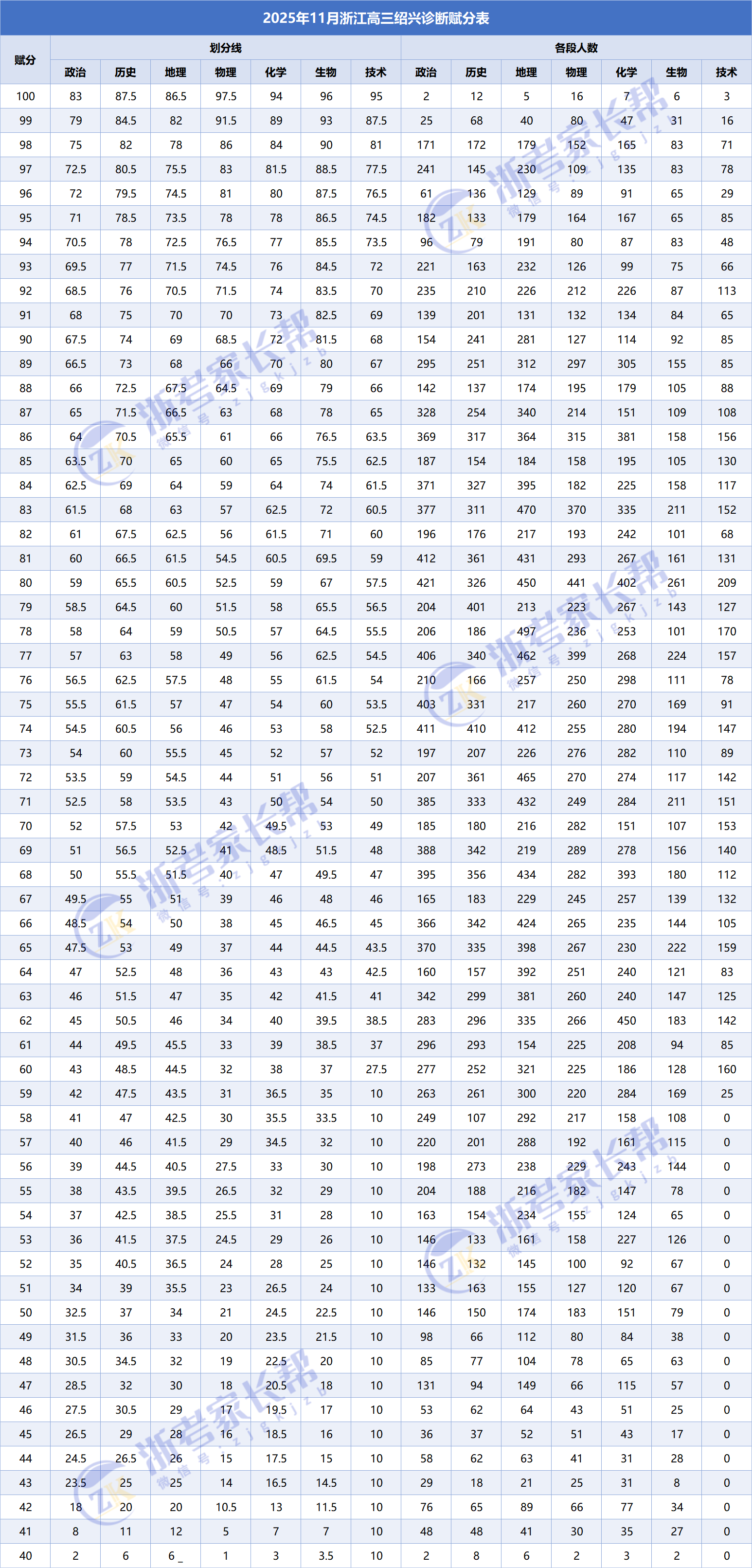 下面是2026绍兴一模十分一段表: