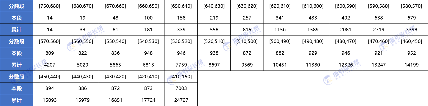 440分-450分:累计人数15093人,最低排名15093名;