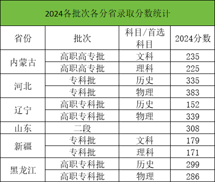 2024年兴安职业技术学院专科批招生,各省最低录取分数线如下: