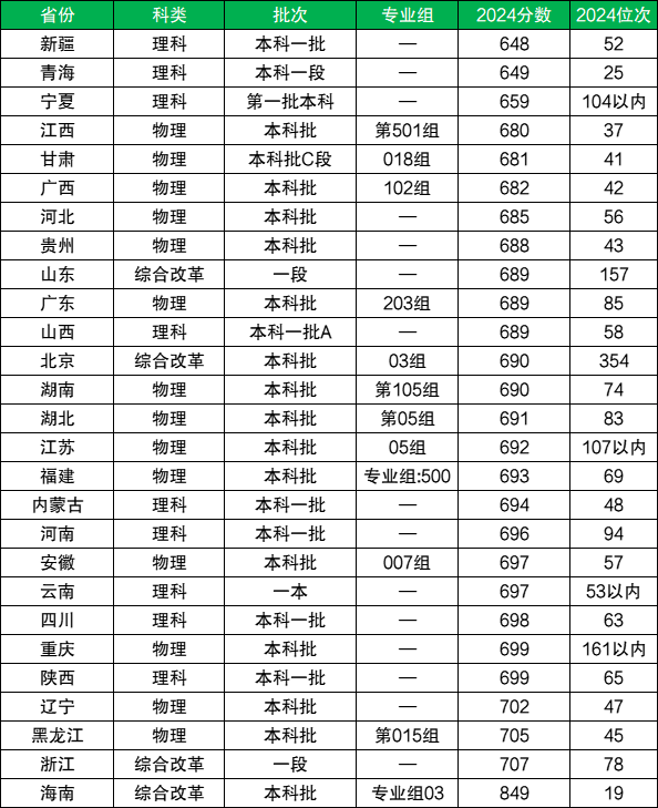 其中北京大学2024年计算机类专业最低分数在648分及以上,大部分省份的收分门槛都在680分以上。