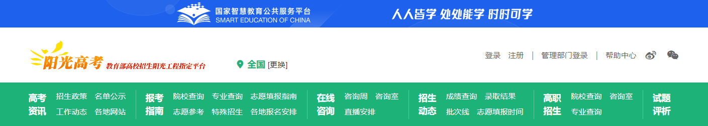 “阳光高考信息平台”是教育部招生“阳光工程”指定的信息发布平台。该平台集招生公示、院校信息、在线咨询、招生计划、高考动态、志愿参考等内容,为考生和家长提供全方位的网上招生信息咨询服务。官方网址如下: