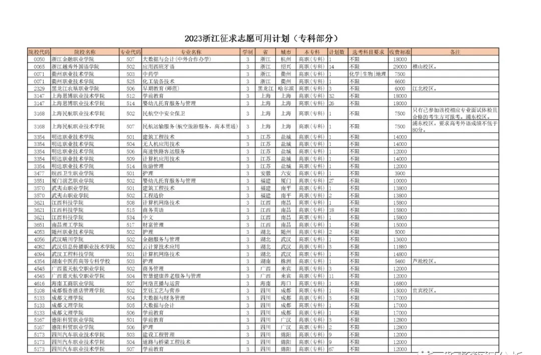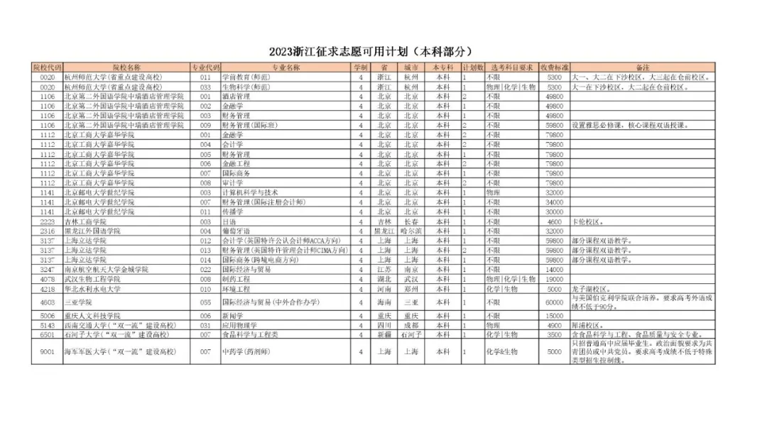 浙江考试院公布的征求志愿可用计划数中,可填报志愿项有142项(学校+专业类),招生计划数共有759个,其中:1、本科28项,招生计划数共有35个;其中:"211双一流”大学+专业3项,招生计划数共有3个。