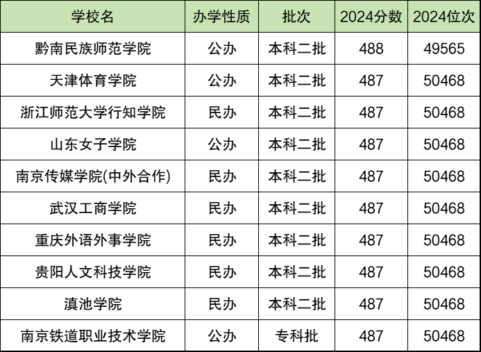 四川文科5万名左右(49565名-50468名)能上学校有:黔南民族师范学院(49565名)、天津体育学院(50468名)、山东女子学院(50468名)、重庆外语外事学院(50468名)、南京铁道职业技术学院(50468名)等。