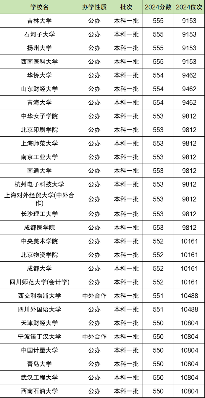 排名1万考生需要冲刺的学校是:吉林大学、石河子大学、扬州大学、西南医科大学,录取分数线为555分,录取位次是9153名。