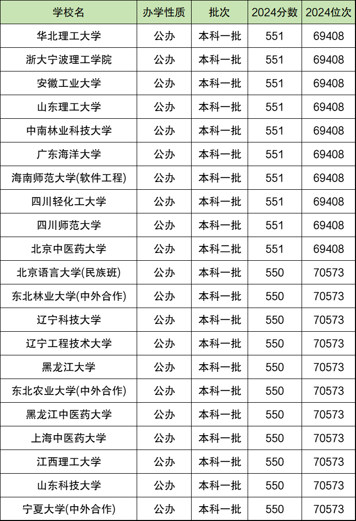 四川理科7万名左右(69408名-70573名)能上学校有:浙大宁波理工学院(69408名)、中南林业科技大学(69408名)、辽宁科技大学(70573名)、黑龙江大学(70573名)、上海中医药大学(70573名)等。