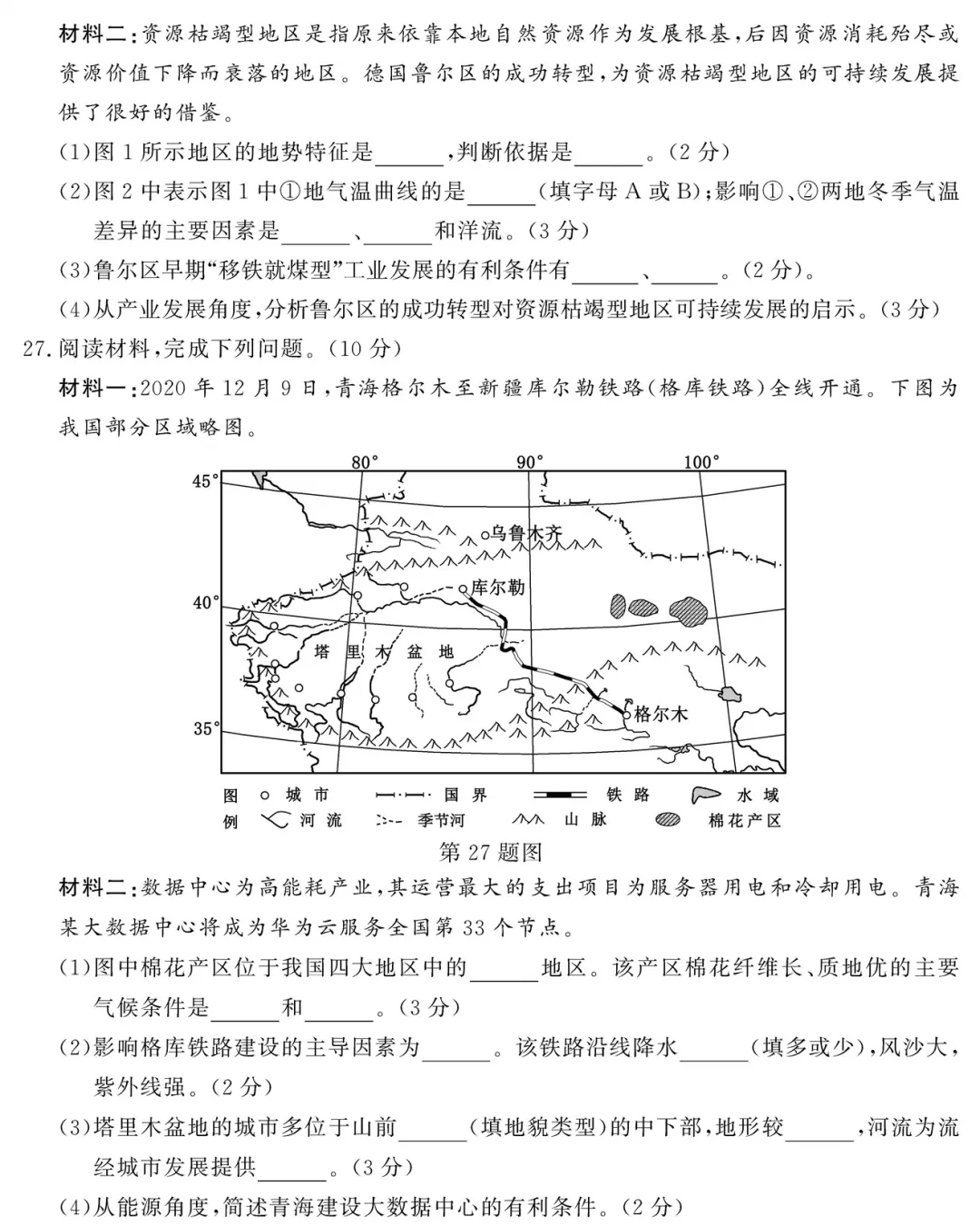 2021浙江学考地理答案-2021浙江地理学考试卷