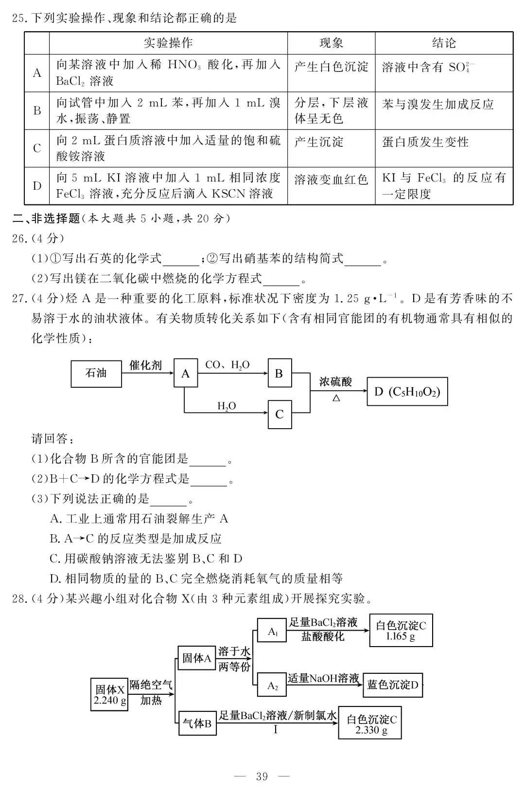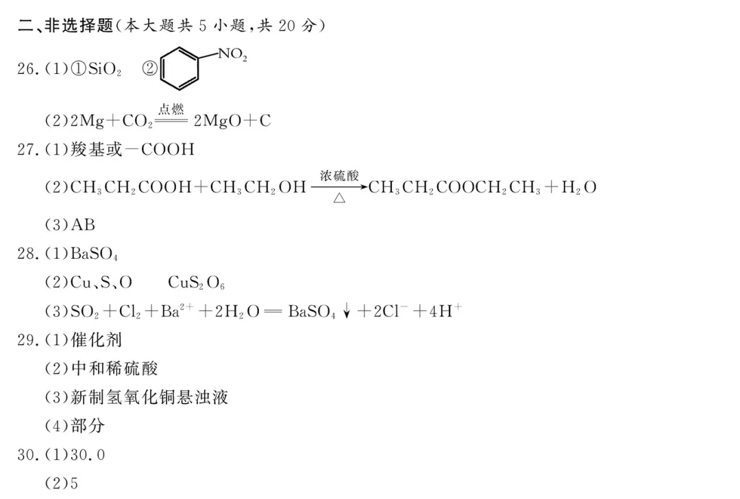2021浙江学考化学答案-2021浙江化学学考试卷