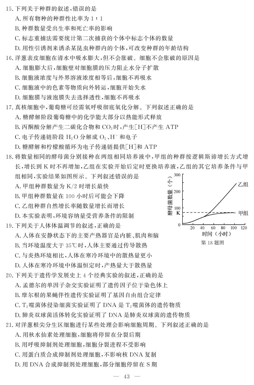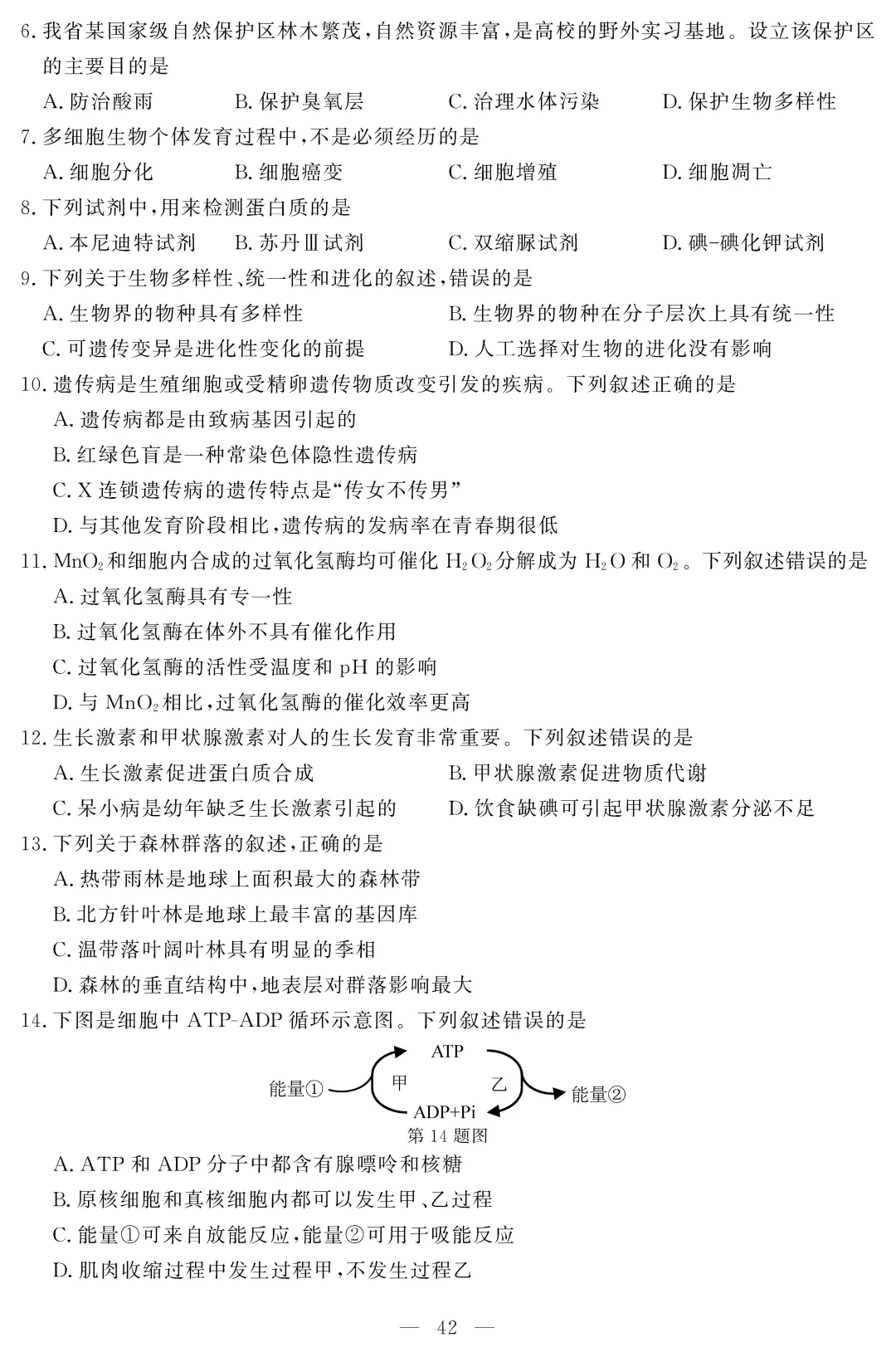 2021浙江学考生物答案-2021浙江生物学考试卷