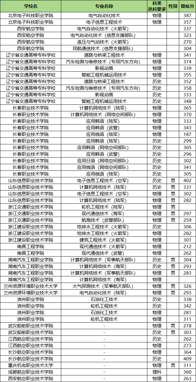 2024吉林定向军士17所招生学校名单包括:西安航空职业技术学院、长春职业技术学院、长沙航空职业技术学院等,具体名单如下表。