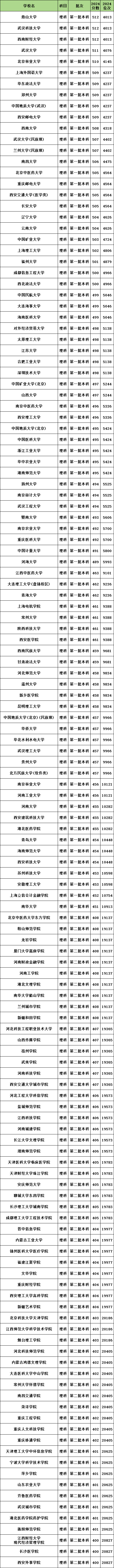 篇幅有限,这里仅展示录取位次排名在5000名、1万名、2万名左右的大学名单:
