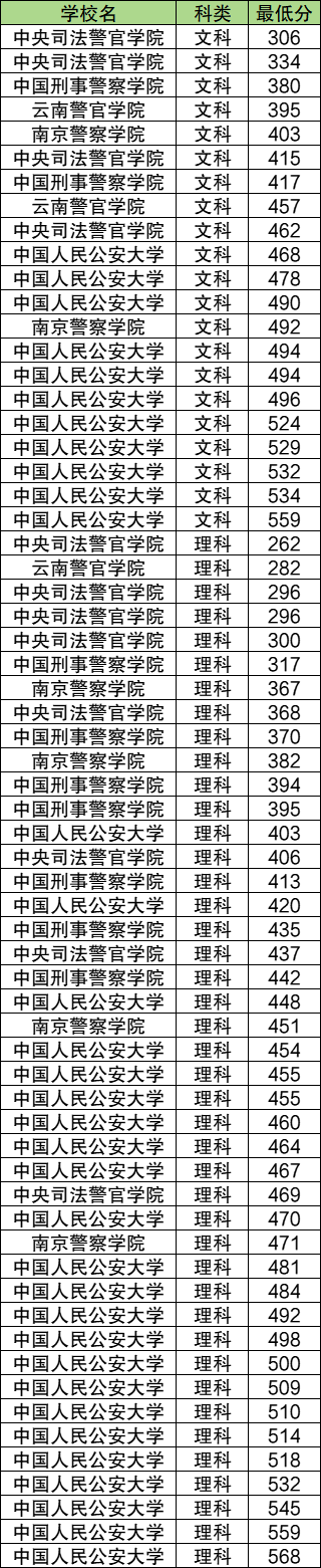 2024年警校在新疆提前批的录取分数线为:文科306分-559分、理科262分-568分。