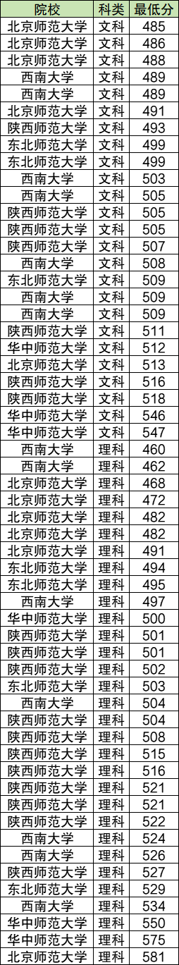 因为在提前批招生院校较多,受到篇幅限制,本文就以公费师范、警校和定向士官为例,整理出这三类院校在新疆提前批的录取分数线。