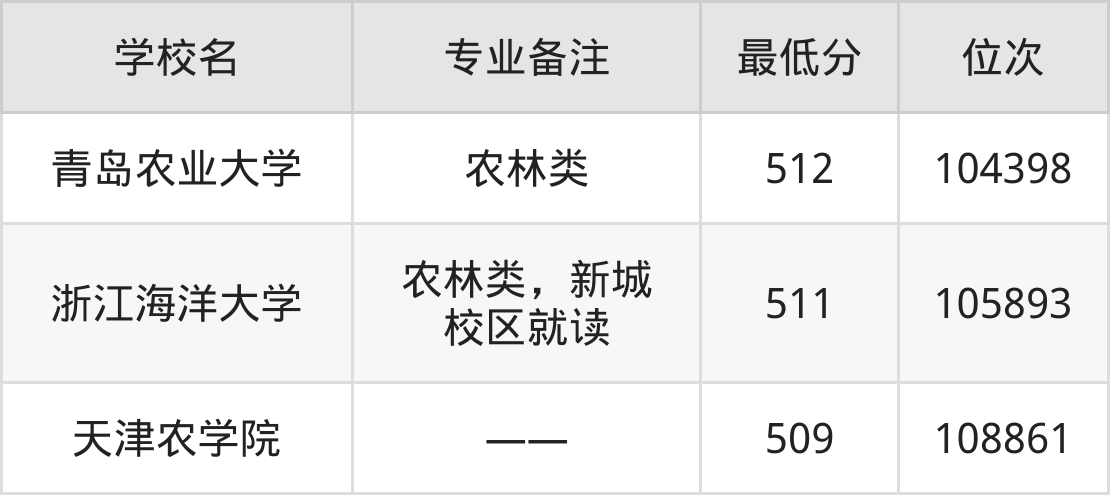 水族科学与技术分数线排名前三的院校分别是:512分的青岛农业大学(农林类)、511分的浙江海洋大学(农林类,新城校区就读)、509分的天津农学院。