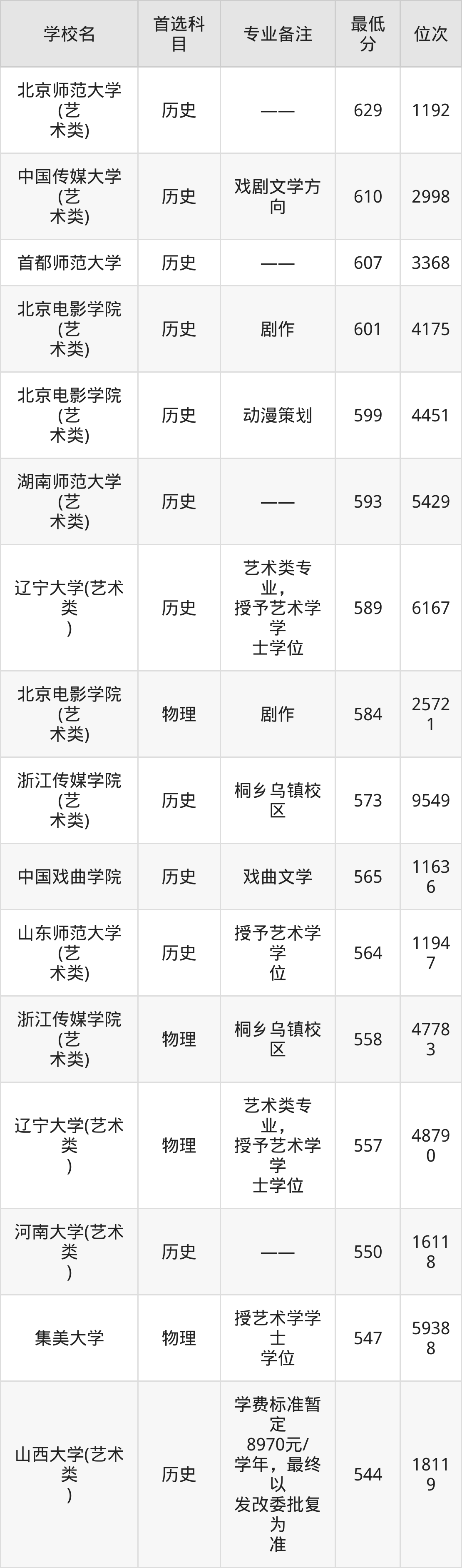 600分左右的戏剧影视文学大学有:北京电影学院(艺术类)601分、北京电影学院(艺术类)599分、首都师范大学607分、湖南师范大学(艺术类)593分。