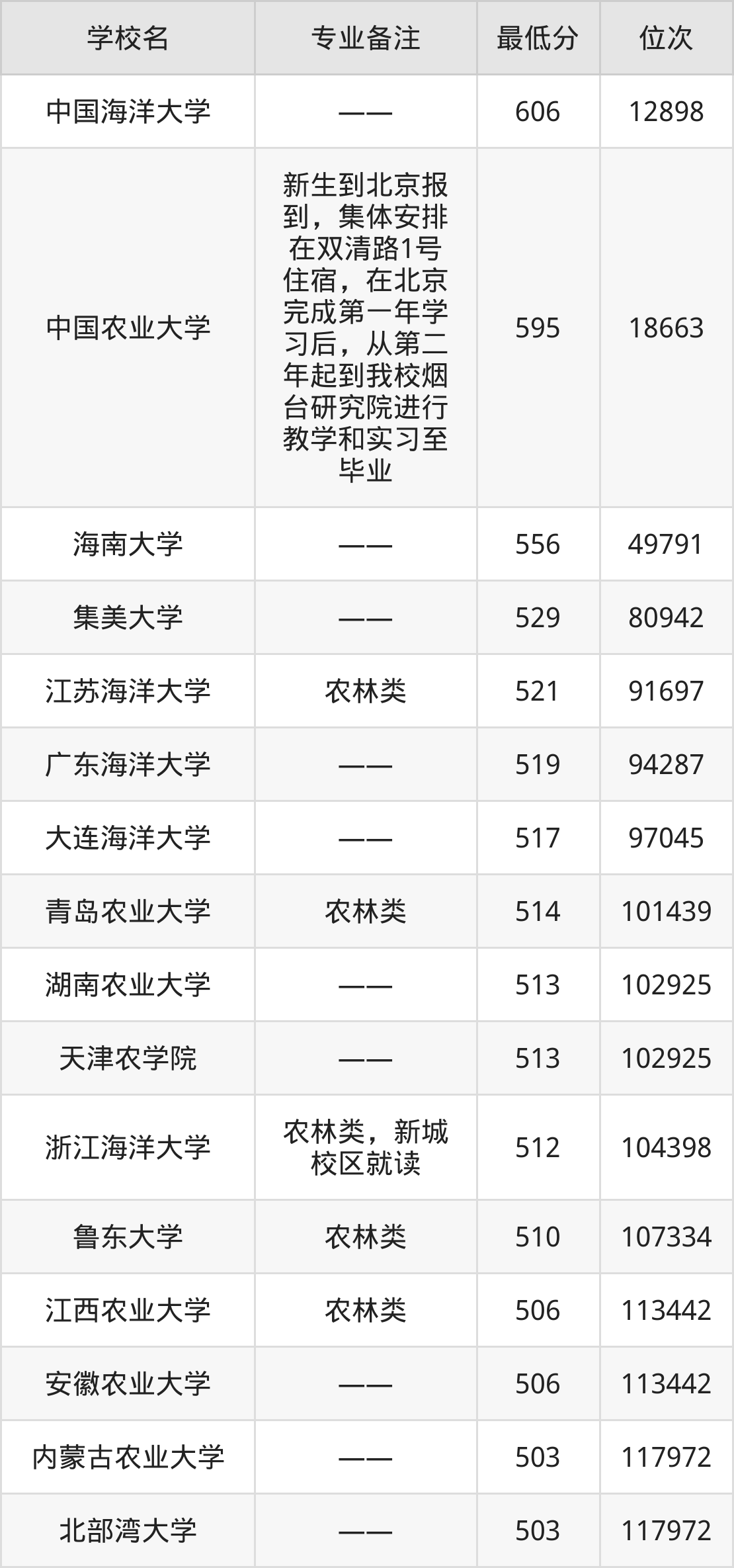 院校举例:中国农业大学、天津农学院、沈阳农业大学、大连海洋大学、浙江海洋大学、湖州师范学院、宁波大学、宁波大学、福建农林大学、南昌大学等。