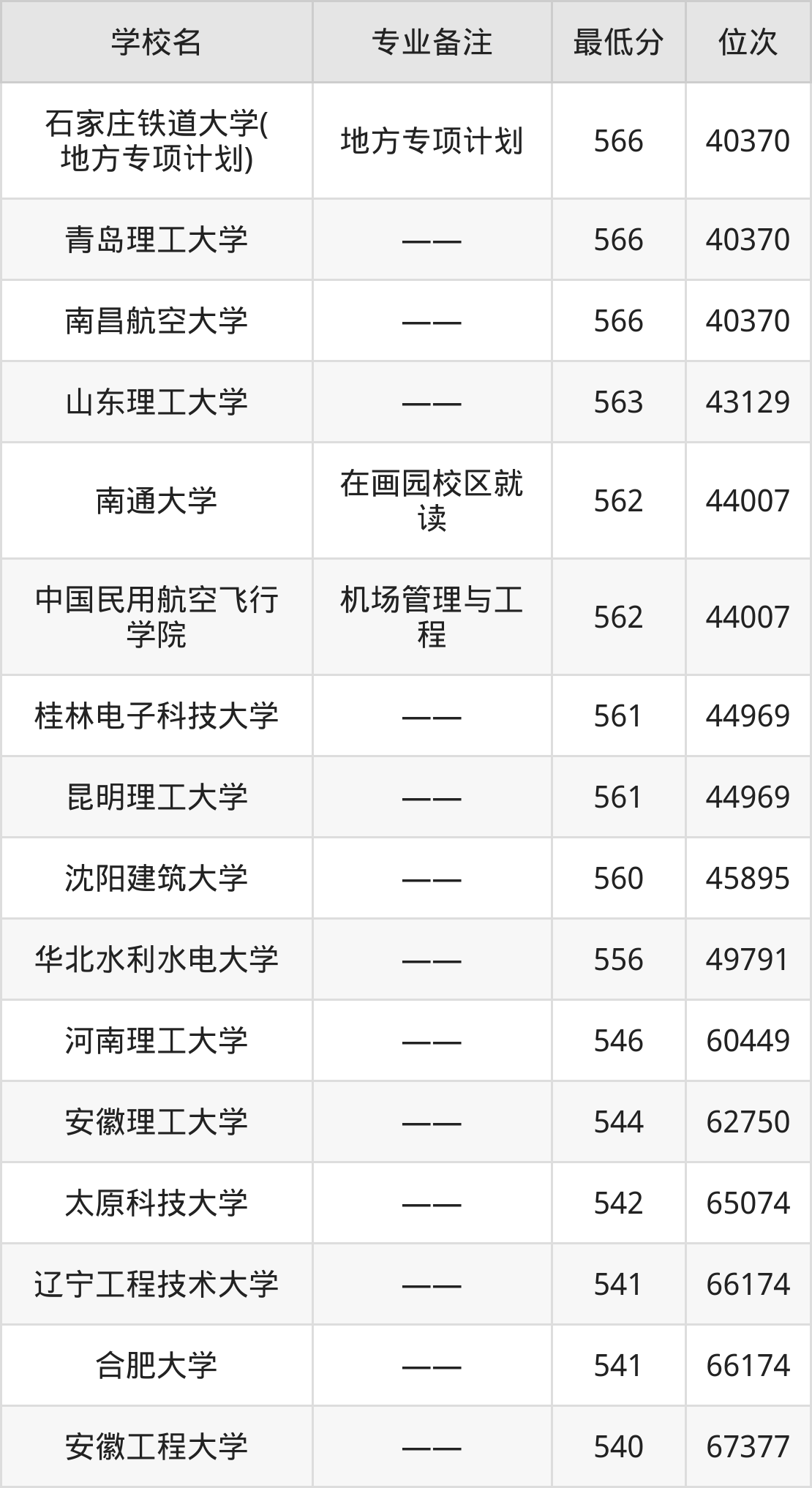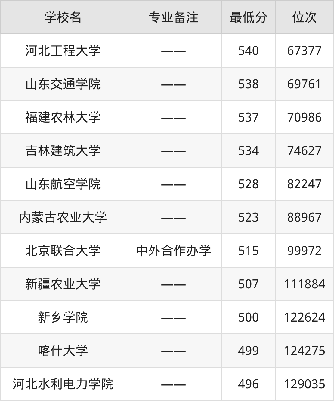 分数线低于520分能上的交通工程大学还有北京联合大学(515分)、新疆农业大学(507分)、新乡学院(500分)、喀什大学(499分)。