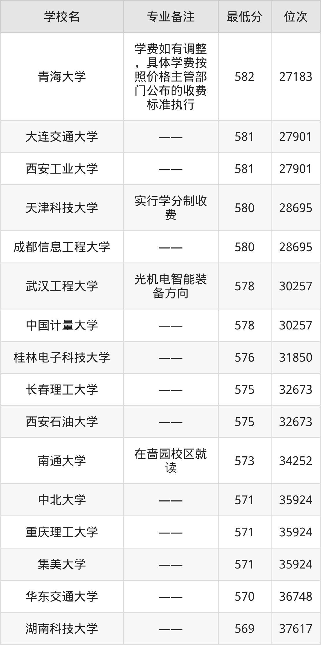 三、机械电子工程专业录取分数线