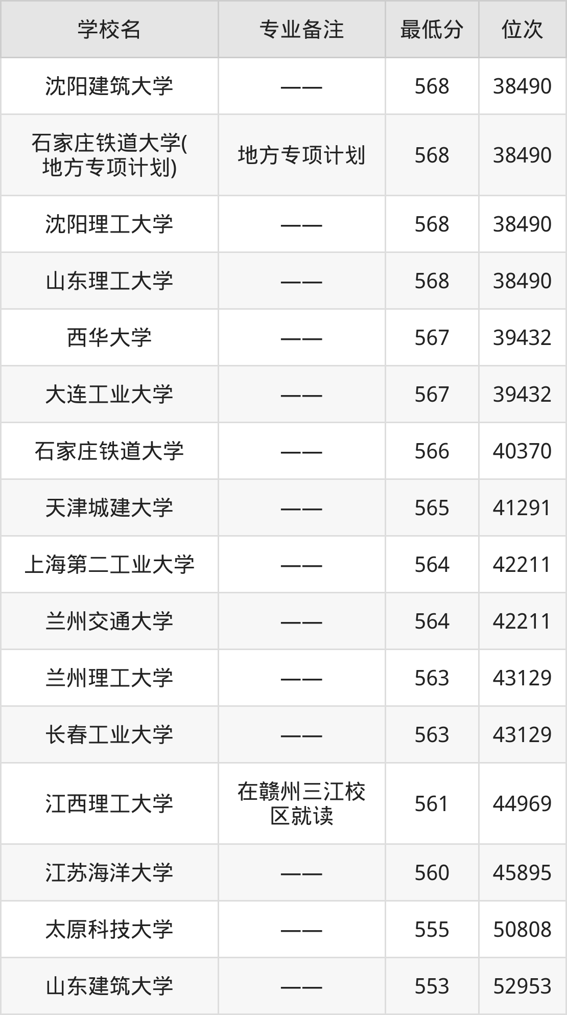 | 沈阳建筑大学 | —— | 物理+化学 |