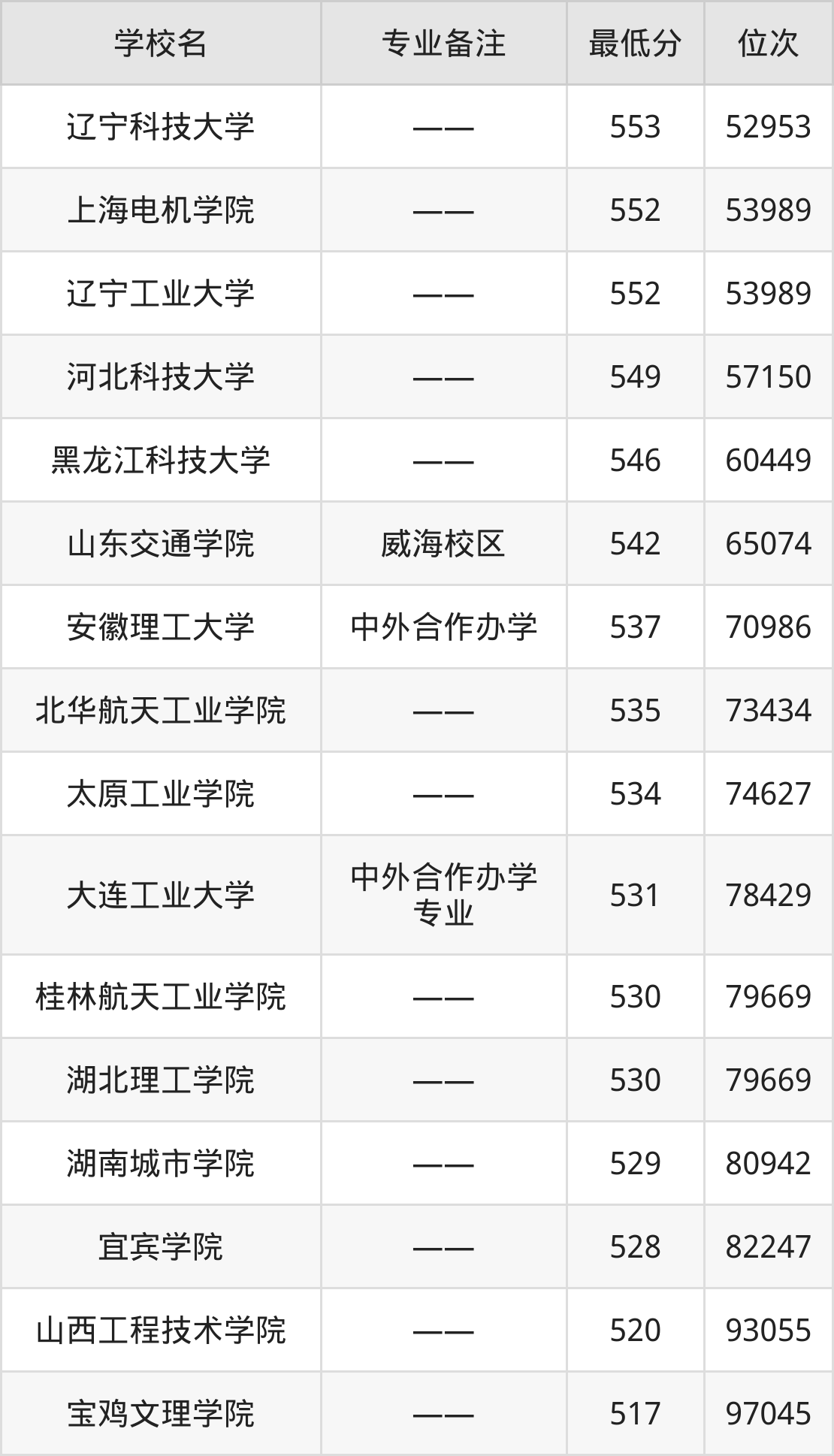 | 沈阳工程学院 | —— | 物理+化学 |