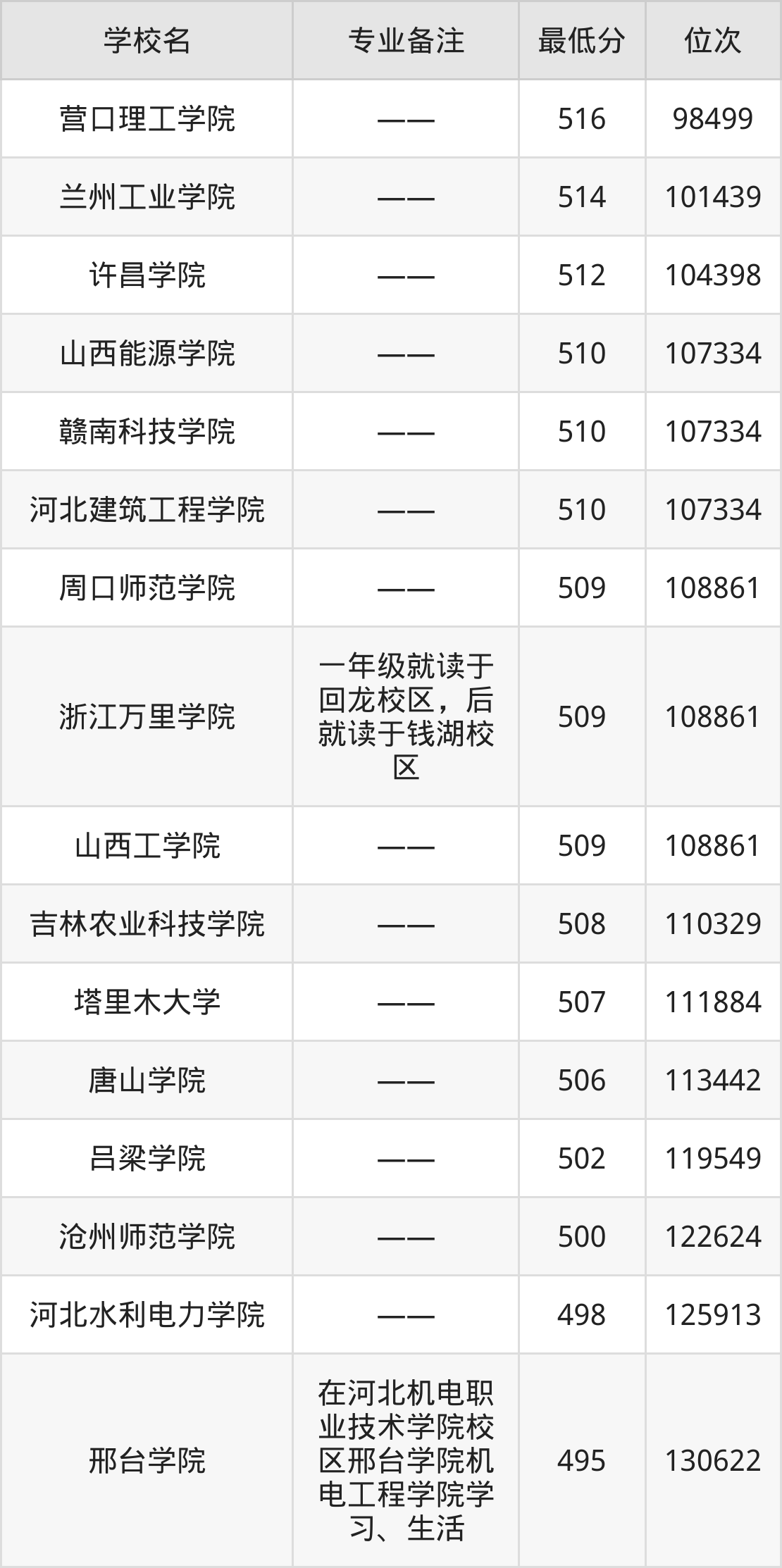 | 晋中信息学院 | —— | 物理+化学 |