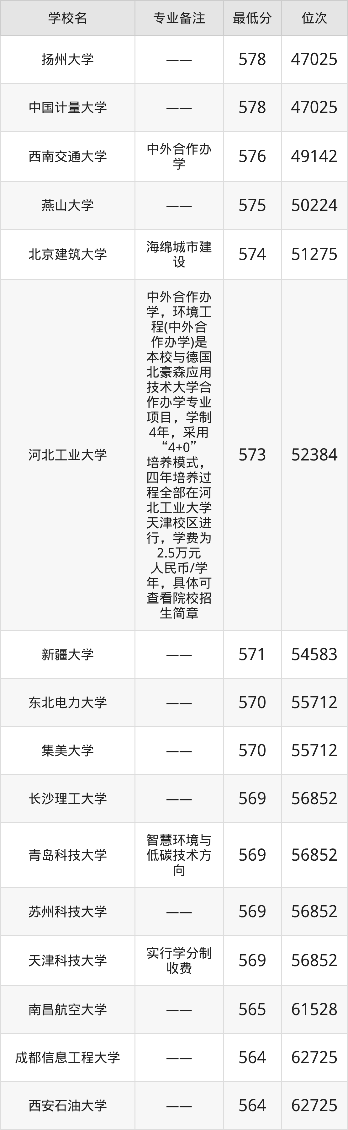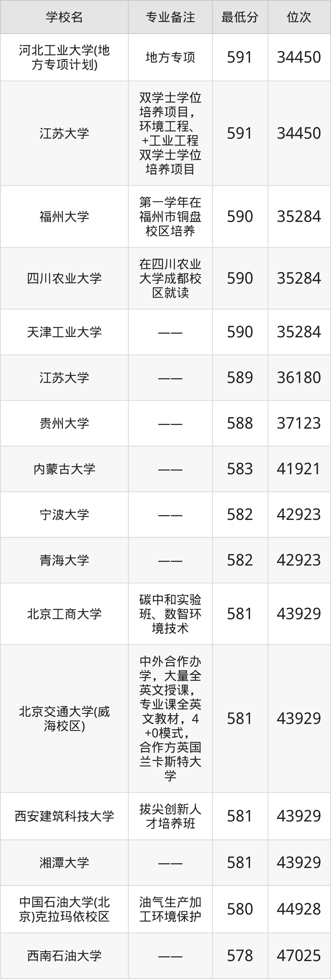 三、环境工程专业录取分数线
