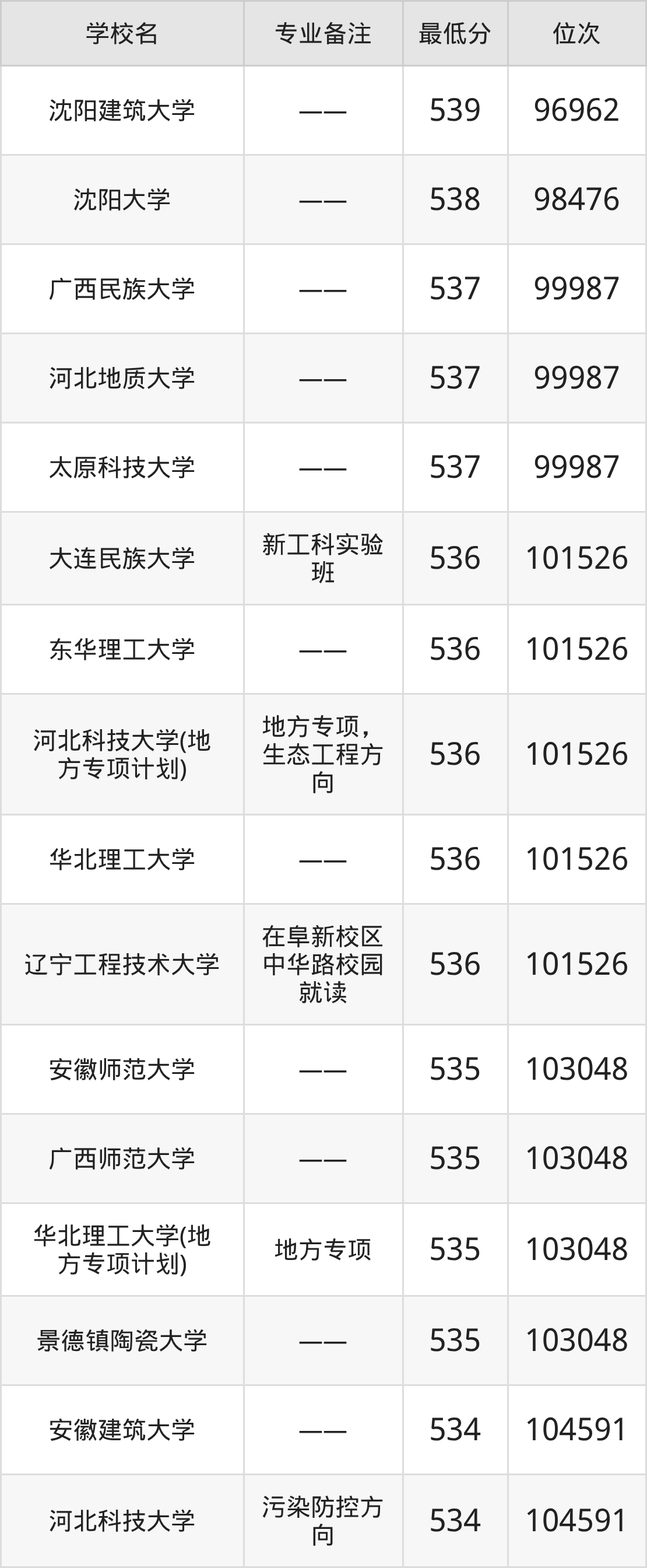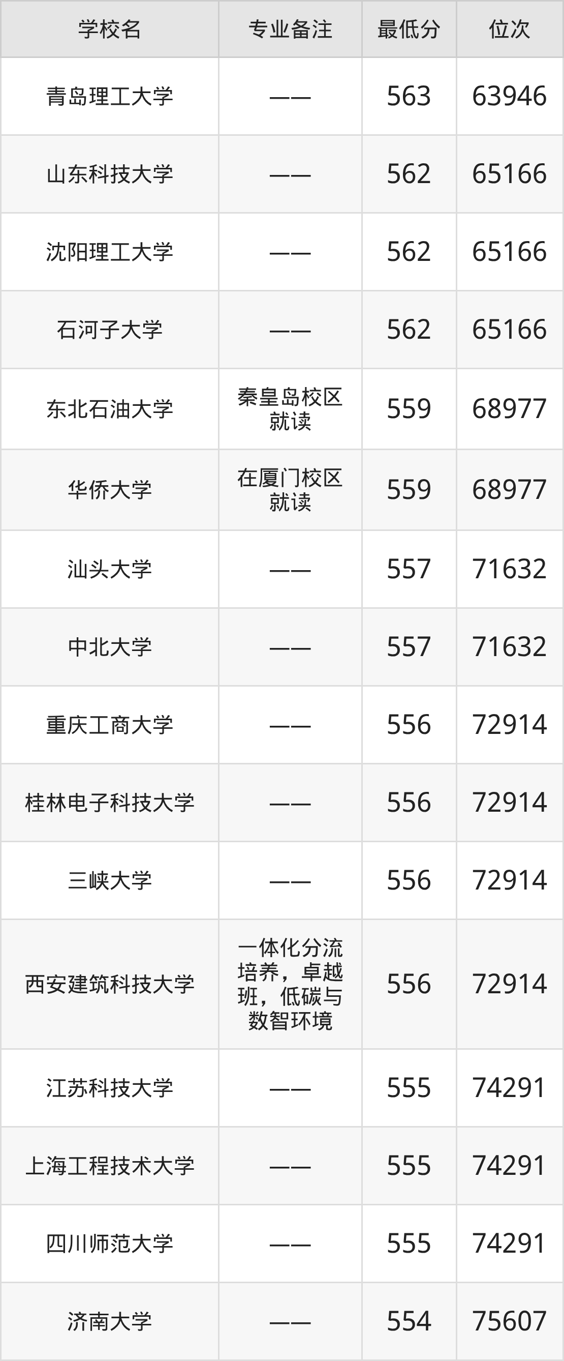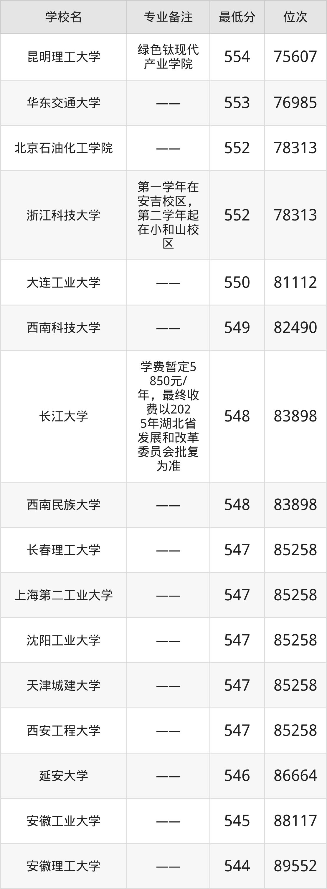 院校举例:大连民族大学、华东交通大学、中原工学院、衡阳师范学院。