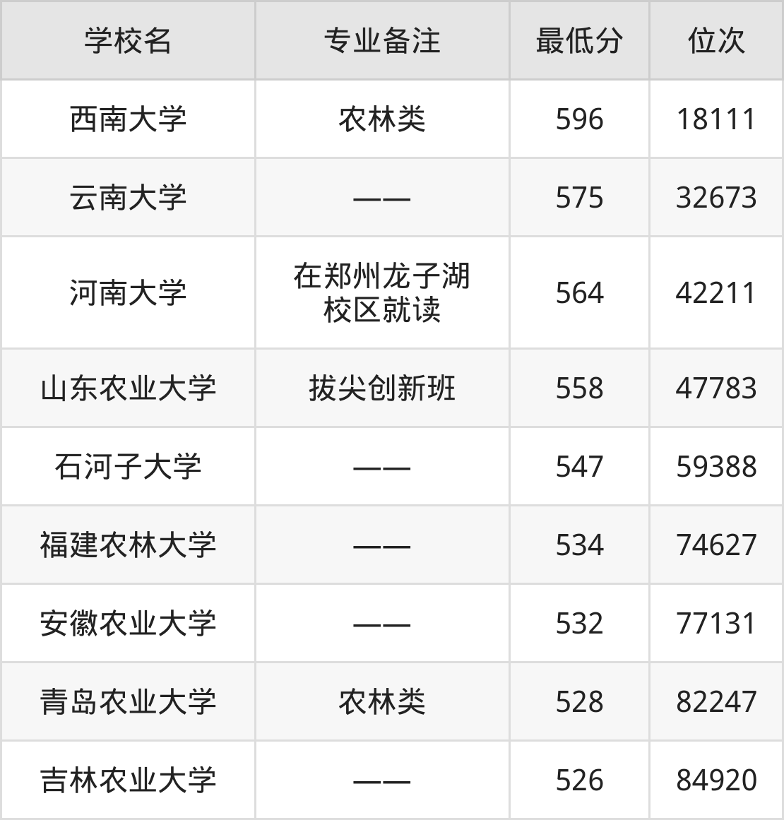 院校举例:中国农业大学、福建农林大学、华南农业大学、华南农业大学、西南大学、西北农林科技大学。