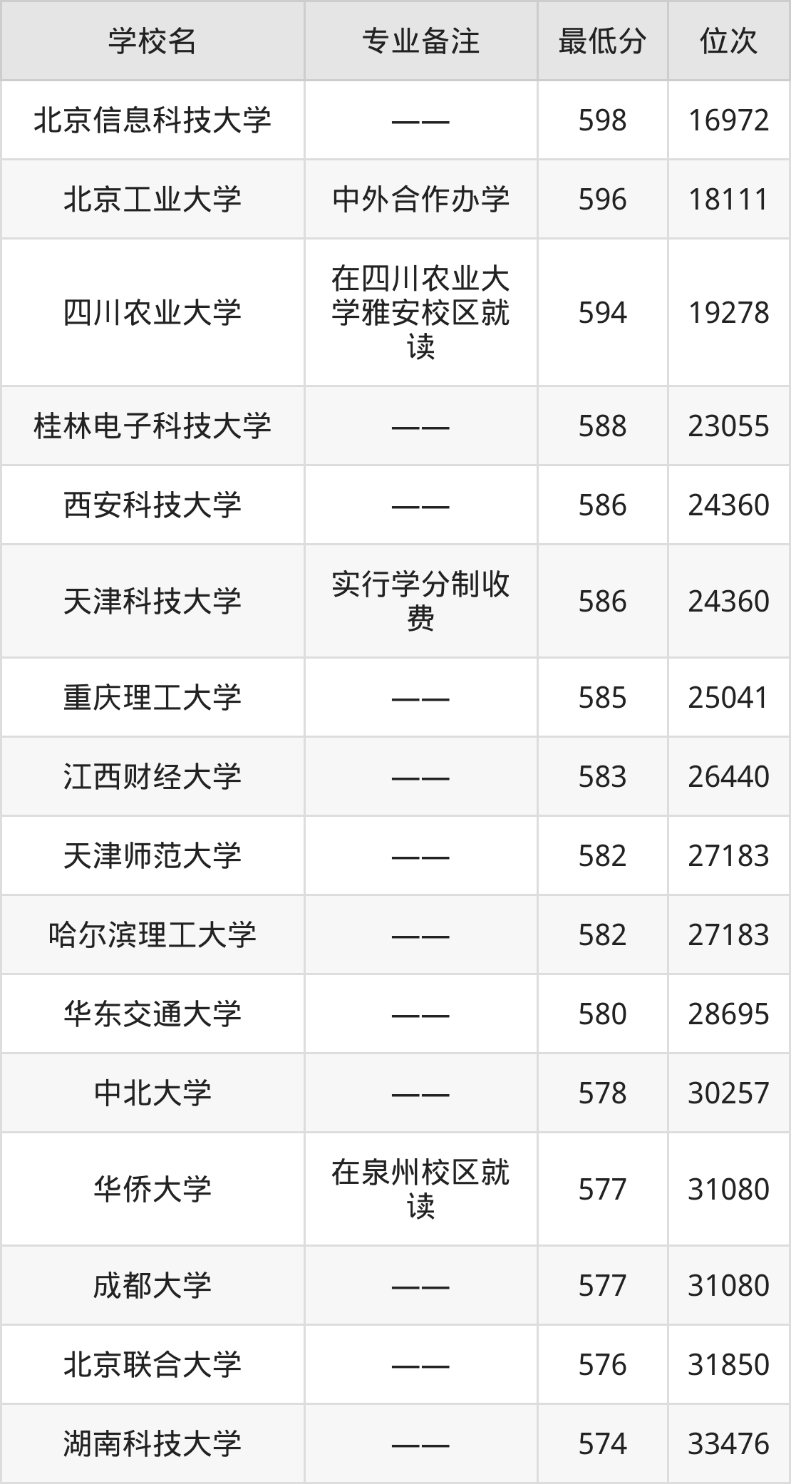 | 北京信息科技大学 | —— | 物理+化学 |