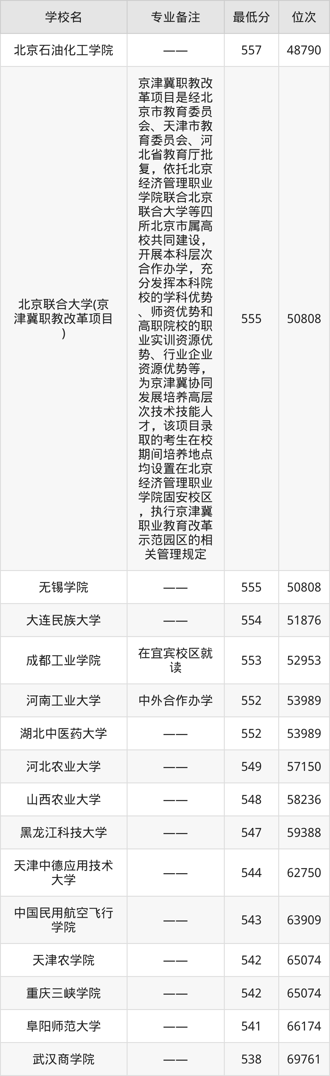 | 北京物资学院 | —— | 物理+化学 |